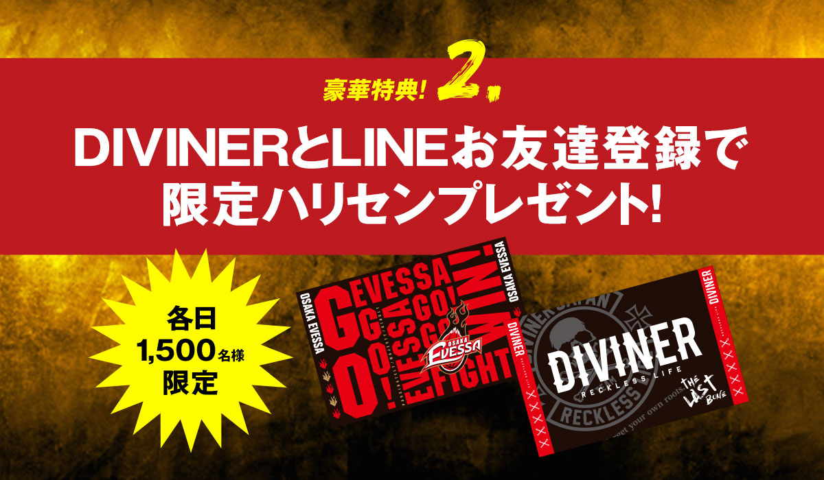 DIVINERとLINEお友達登録で限定ハリセンを会場にてプレゼント!