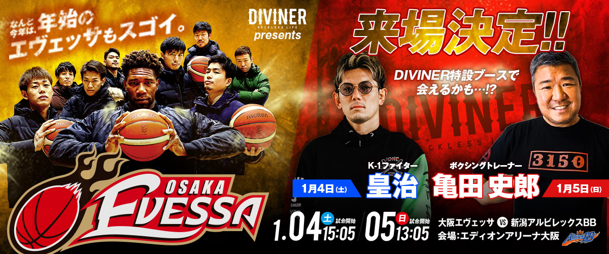 本拠地大阪にてDIVINERプレゼンツ・大阪 EVESSA 対 新潟アルビレックスBBが決定。