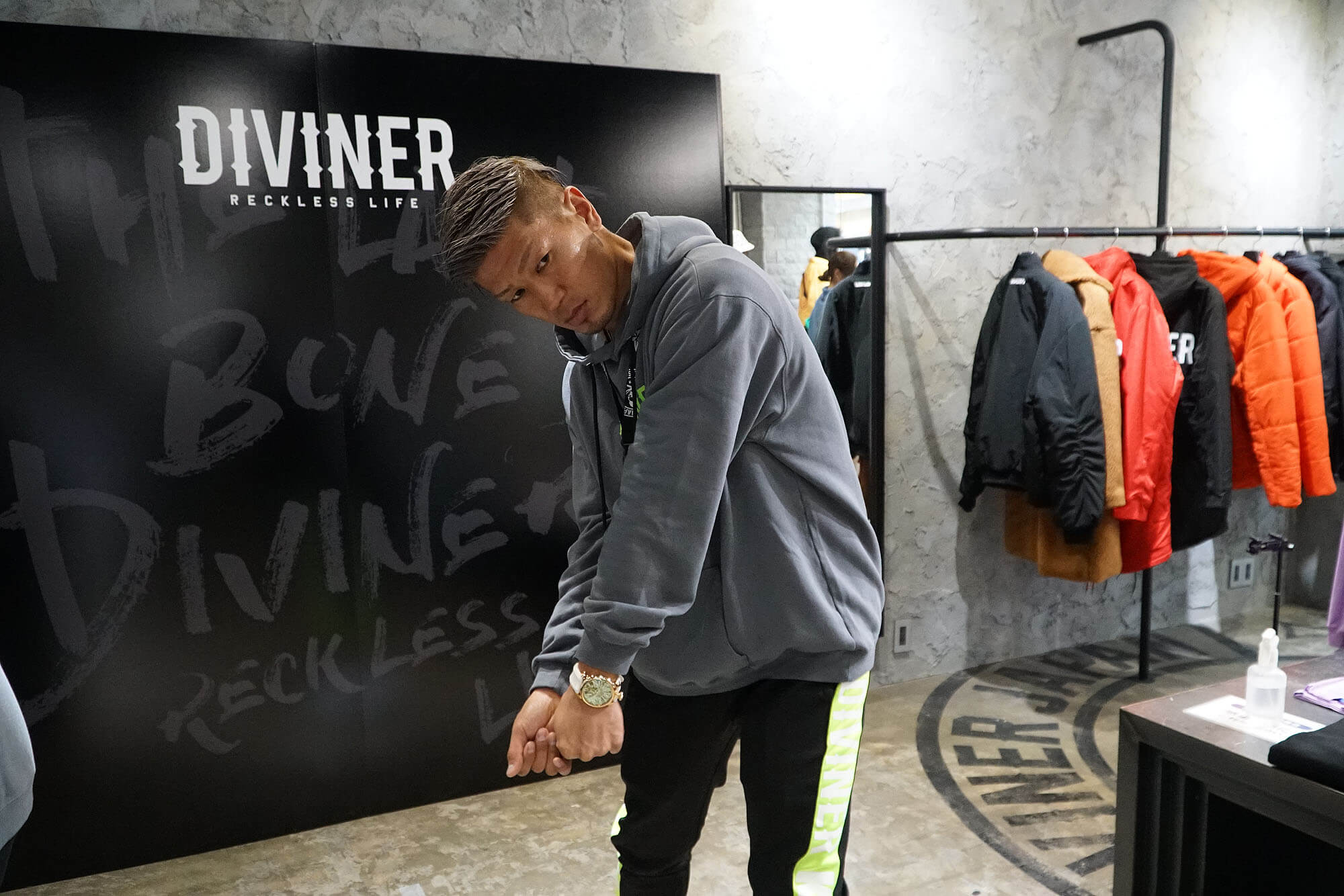 「DIVINER」のアンバサダーを務める城戸康裕選手が、1日店長としてショップに立ち、