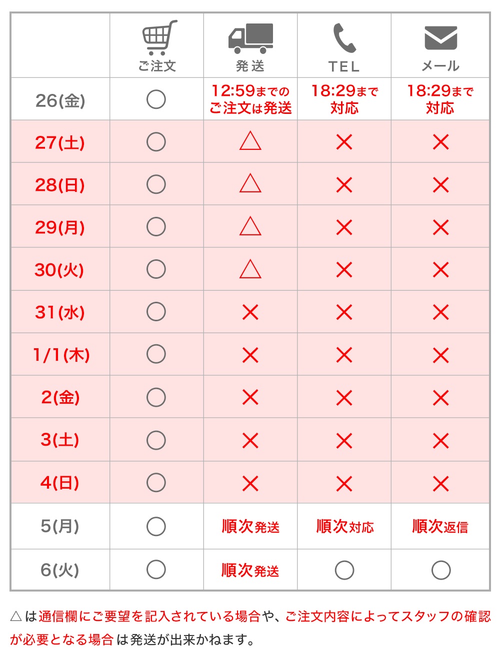 2025年12月26日(金)13時以降にご注文されたご注文に関しまして、